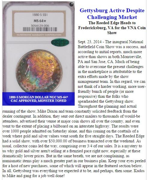 The Inaugural National Battlefield Coin Show™ in Gettysburg, PA on September 20th
